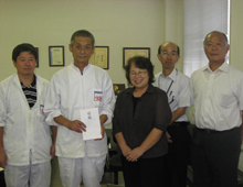 【(株)浜勘】左端が浜勘岩間工場長、左から2人目が浜勘海野代表取締役
