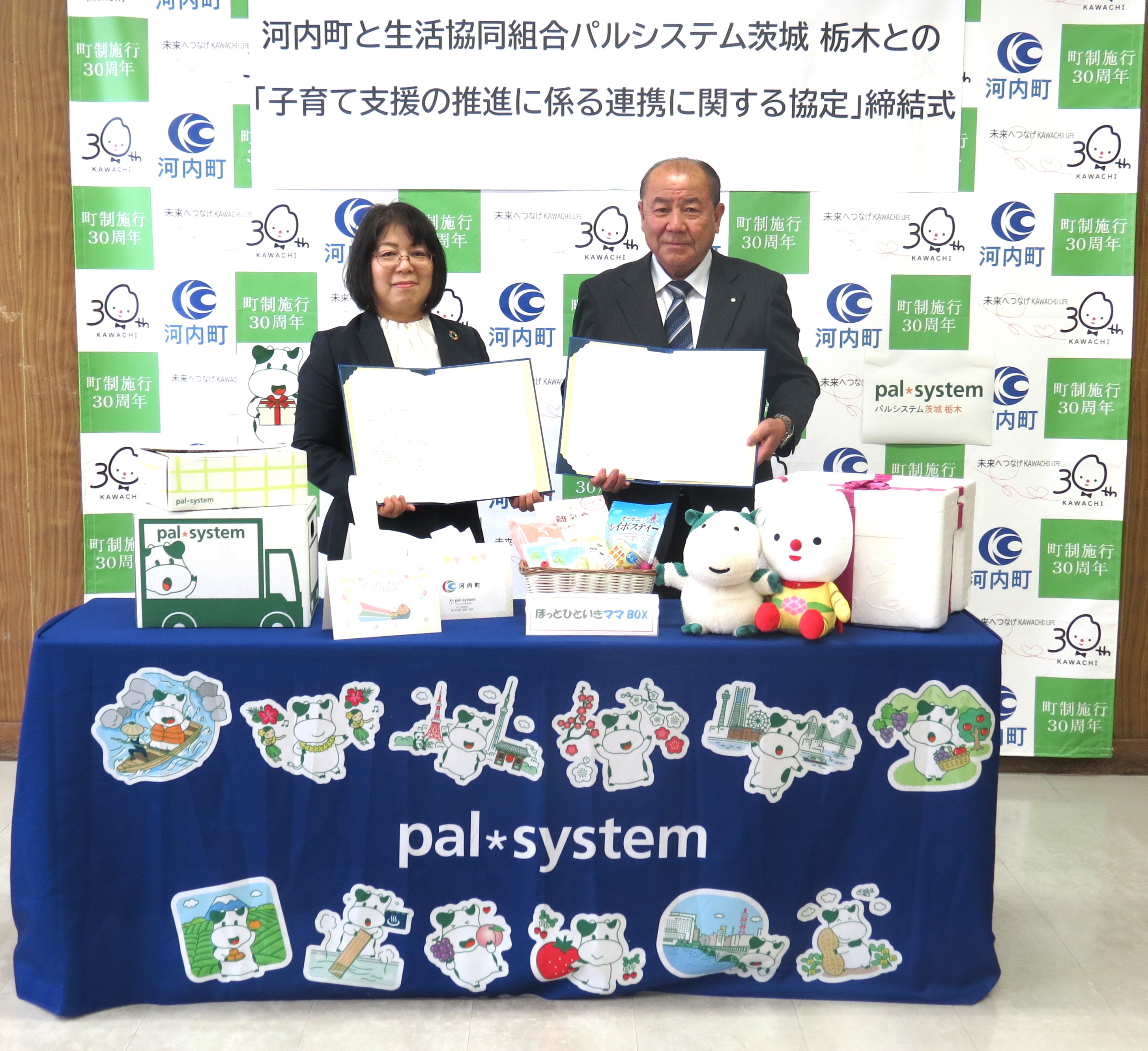 生活協同組合パルシステム茨城 栃木は、4月7日(火)に町民の子育て支援を目的に河内町と連携協定を締結しました。