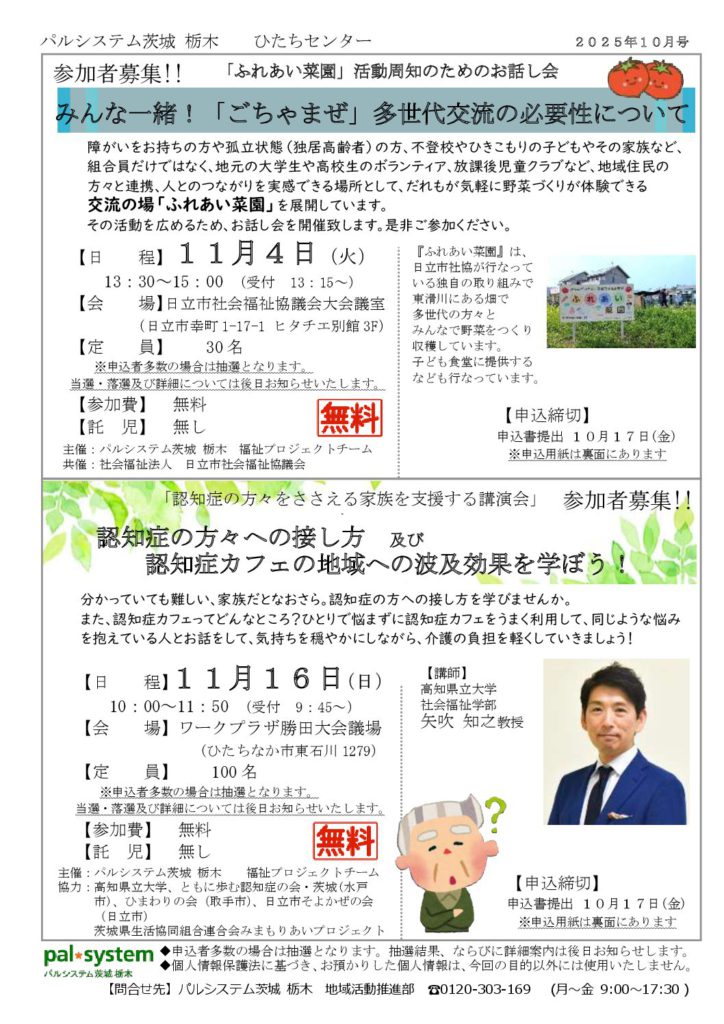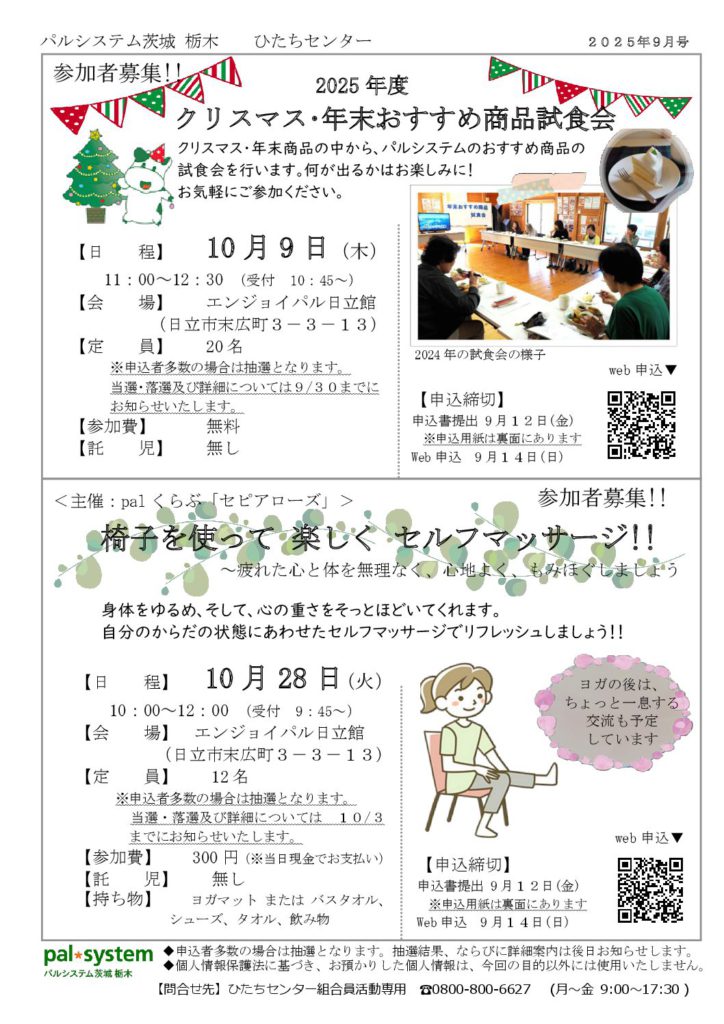 2025年 ひたちセンターからのお知らせ/参加募集企画 10月号