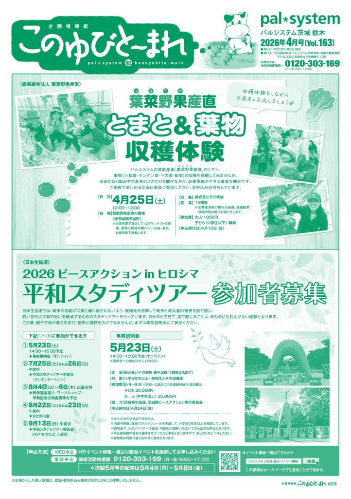 パルシステム茨城 栃木の活動や企画掲載中「企画情報紙 このゆびと~まれ」です。