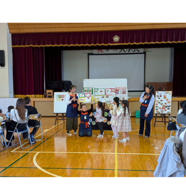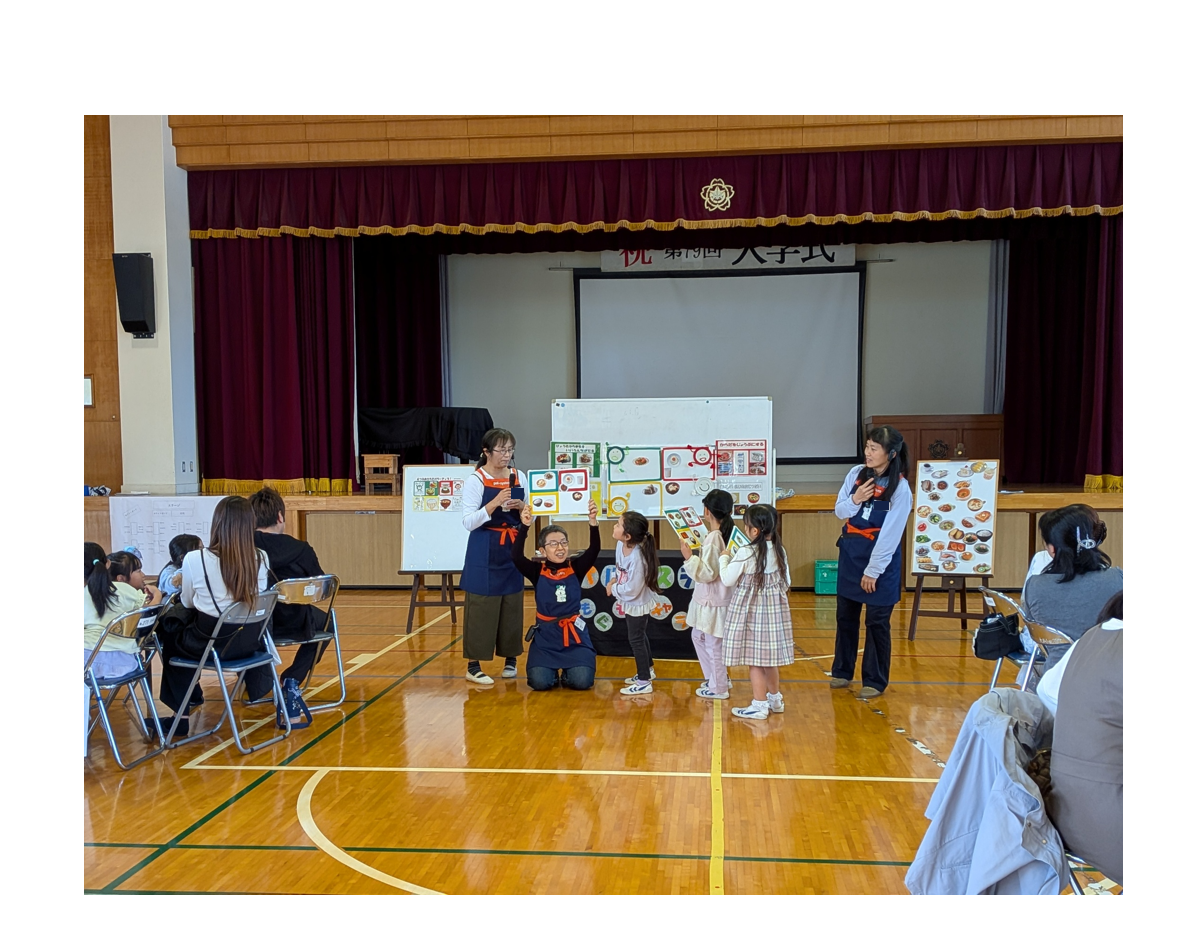 【食育出前授業/テーマ別組合員活動「食育】茨城町立...大戸小学校1年生の親子学習会にて、食育出前授業をおこないました。パネルシアター「4つのお皿」では4色に分けられる食品がそれぞれ体にどのような働きをするのか、4つの食品群をバランス良く食べることの大切さについて学びました。その後グループワークでは食べものカードを使ってバランスの良い昼食作りをおこない、楽しく学習することができました。